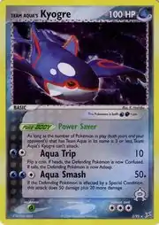Team Aqua's Kyogre (Japanese: アクア団のカイオーガ Aqua Gang's Kaiorga) is a dual-type Water/Darkness Basic Pokémon card. It is part of the EX Team Magma vs Team Aqua expansion.
