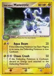 Team Aqua's Manectric (Japanese: アクア団のライボルト Aqua Gang's Livolt) is a Lightning-type Stage 1 Pokémon card. It is part of the EX Team Magma vs Team Aqua expansion.