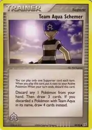 Team Aqua Schemer (Japanese: アクア団の男 Aqua Gang's Man) is a Supporter card. It is part of the EX Team Magma vs Team Aqua expansion.