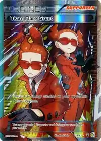 Team Flare Grunt (Japanese: フレア団のしたっぱ Flare Gang Underling) is a Supporter card. It was first released as one of the XY-P Promotional cards, later reprinted in the English XY expansion.