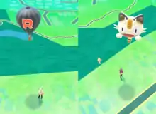 From July 7 to September 30, 2020, a Meowth-shaped balloon may sometimes appear instead. Tapping this balloon will initiate two consecutive battles against Jessie and James (you are allowed to switch and/or heal your Pokémon between battles).