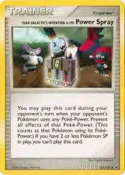 Team Galactic's Invention G-103 Power Spray (Japanese: ギンガ団の発明G-103 パワースプレー Team Galactic's Invention G-103 Power Spray) is a Trainer card. It is part of the Platinum expansion.