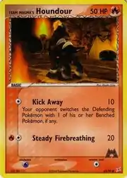 Team Magma's Houndour (Japanese: マグマ団のデルビル Magma Gang's Delvil) is a Fire-type Basic Pokémon card. It is part of the EX Team Magma vs Team Aqua expansion.