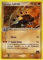 Team Magma's Lairon (Japanese: マグマ団のコドラ Magma Gang's Kodora) is a Fighting-type Stage 1 Pokémon card. It is part of the EX Team Magma vs Team Aqua expansion.