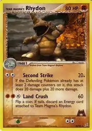 Team Magma's Rhydon (Japanese: マグマ団のサイドン Magma Gang's Sidon) is a Fighting-type Stage 1 Pokémon card. It is part of the EX Team Magma vs Team Aqua expansion.