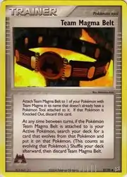 Team Magma Belt (Japanese: マグマ団のパルサー Magma Gang's Pulsar) is a Pokémon Tool. It is part of the EX Team Magma vs Team Aqua expansion.