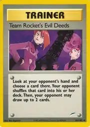 Team Rocket's Evil Deeds (Japanese: ロケット団の暗躍 Rocket Gang's Dark Deeds) is a Trainer card. It is part of the Neo Destiny expansion.