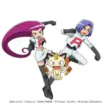 Musashi (Megumi Hayashibara), Kojiro (Shin-ichiro Miki), Meowth (Inuko Inuyama), Sonans (Yūji Ueda)