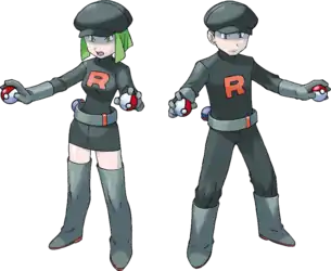 Team Rocket Grunts (Japanese: ロケットだんいん Team Rocket Member in Generation I, ロケットだんいんのしたっぱ Team Rocket Underling Member in Generation II, ロケットだんのしたっぱ Team Rocket Underling in Generations III, IV, and VII) are members of Team Rocket. They act as fodder, enforcers, soldiers, workmen, crooks, and backup for various leaders in the criminal organization.