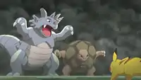 In Meloetta and the Undersea Temple!, more Grunts greeted Giovanni as he arrived to Unova to supervise Team Rocket's Operation Tempest. Two Grunts later appeared at Cynthia's villa, attempting to steal Meloetta from Ash and his friends. The latter got assistance from Ridley, who used his Golurk to battle the Grunts' Golem and Rhydon while Ash and others ran away with Meloetta.