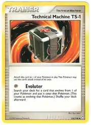Technical Machine TS-1 (Japanese: ワザマシン TS-1 Technique Machine TS-1) is a Technical Machine card. It is part of the Legends Awakened expansion.