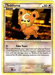 Fake Tears is a move in the Pokémon games that Teddiursa can learn. This card's Pokédex entry comes from Pokémon HeartGold.