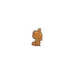 Teddiursa is a bipedal, ursine Pokémon covered in short, orange-brown fur. Its muzzle is a light tan color with a small black nose and black eyes with white irises. There is a slightly paler tan crescent marking on its face, and it has round ears. It has three claws on its forepaws as well as two claws and yellow paw pads on its hind paws. Its tail is short, round, and puffy.