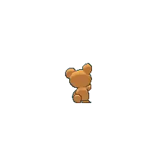 Teddiursa can use Beedrill's pollen and fruit to create its own honey. The marking on its face could glow when it finds a honey already made. Honey tend to be absorbed into Teddiursa's forepaws, and it is always seen licking them. Teddiursa can be cunning, stealing into the nests of Combee and taking the honey that they have amassed for itself. It will hide food throughout its territory before food becomes scarce in winter. Teddiursa lives in mountainous forests.