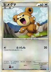 Teddiursa (Japanese: ヒメグマ Himeguma) is a Colorless-type Basic Pokémon card. It is part of the Unleashed expansion.