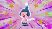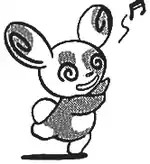 Mime Jr. does a hula-like dance, making everyone around it, people and Pokémon, do the same dance. Sometimes its body becomes outlined in light blue while it is dancing. When it does, the opponent also becomes outlined in light blue when affected. Sometimes, instead of dancing, the opponent becomes outlined in light blue and becomes dazed and disoriented, or Mime Jr. does a hula-like dance. When it does, its body becomes outlined in light purple and it releases waves of light purple from its body all around it. When the opponent is hit by the waves, its body becomes outlined in light purple and it jumps back and forth uncontrollably. | ||