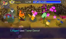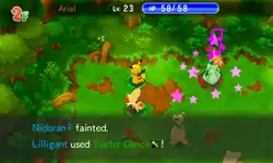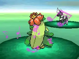 Lilligant dances and creates waves of pink mist which spreads outwards and hits the opponent. The opponent then becomes confused. | ||