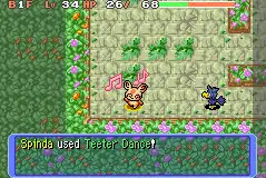 | Spinda starts dancing by jumping from one leg to the other. The opponent then starts to dance the same dance uncontrollably. | |||