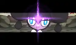 Elgyem's eyes glow light green. The opponent then becomes outlined in light green as well and Elgyem can make it float and control it with its mind. | ||