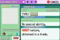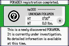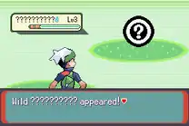 If ?????????? is traded to Pokémon Emerald, it can be left in the Pokémon Day Care and will instantly grow to level 100. At this point, it can learn any of the eight HM moves via HM and will be safe for the game unless its summary is looked at. If given Rare Candies, it will start rapidly learning Ice Punch, even if the player refuses to teach it. This can be fixed by activating the "access fly map" GameShark code. ??????????'s National Pokédex number can vary, ranging from 0 to over 386, depending on its hexadecimal identifier. If the hexadecimal identifier number is over 1000, then a ? mark replaces the hundreds' column (e.g. ?24).