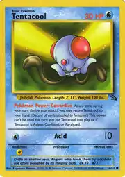 Tentacool (Japanese: メノクラゲ Menokurage) is a Water-type Basic Pokémon card. It was first released as part of the Fossil expansion.