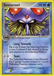 Tentacruel (Japanese: ドククラゲ Dokukurage) is a Water-type Stage 1 Pokémon card. It is part of the EX Hidden Legends expansion.
