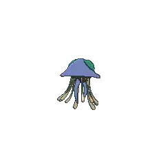 Tentacruel's primarily light blue body helps it camouflage in the water. It has a total of 80 tentacles, which it can readily extend during hunts to ensnare its prey in a net-like shape before immobilizing it with poison. The tentacles can grow or shrink with ease. Its tentacles can absorb water to stretch even further. Most of these tentacles are hidden and kept short, leaving up to 14 exposed. However, it tends to lose tentacles as it ages. While Tentacruel are rarely seen, they can gather in large groups which scares away any nearby fish Pokémon. Tentacruel lives in underwater rock formations and can be found throughout the ocean.