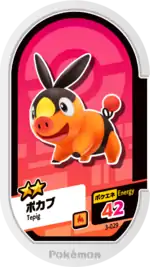 Tepig (Japanese: ポカブ Pokabu) is a Grade 2 Pokémon Mezastar tag. It is part of the third set.