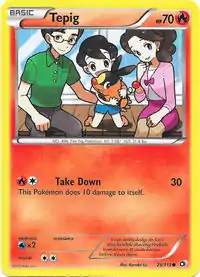 Tepig (Japanese: ポカブ Pokabu) is a Fire-type Basic Pokémon card. It was first released as part of the Black & White expansion.
