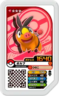 Tepig (Japanese: ポカブ Pokabu) is a Grade 1 Pokémon Ga-Olé disk. It is part of the fourth Grand Rush set.