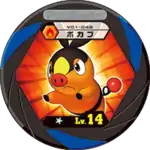 Tepig (Japanese: ポカブ Pokabu) is a Pokémon Battrio puck. It is part of the Black Thunder - White Fire expansion.
