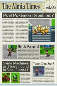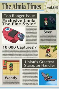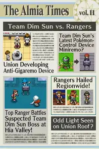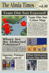 The newspaper itself is simply a plot device. Other characters will usually "show" the player the latest volume. It often reports major events from the storyline, while other times it has articles about other key concepts and characters from the game. The text appears as blurry lines, so only the headlines and the pictures are readable. Some of the pictures of events like the player fighting Ice's Froslass, couldn't have been taken as there was nobody else around. Early pictures of Team Dim Sun were also blurry.