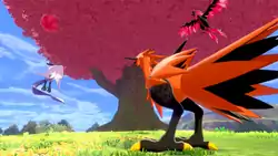 In the third adventure, A Legendary Tree of a Legendary Three! (Japanese: 目撃!大樹に集う伝説の鳥伝説!! Witnessed! The Gathered Legendary Birds at the Big Tree!!), the player encounters the Galarian Forms of the Legendary birds at the Dyna Tree Hill, but the sound of the player's Rotom Phone going off alerts them, and they scatter across the region, becoming roaming Pokémon. Articuno roams around the Crown Tundra, Zapdos roams around the Wild Area, and Moltres roams around the Isle of Armor. Catching all of them and reporting the findings to Peony concludes the adventure.