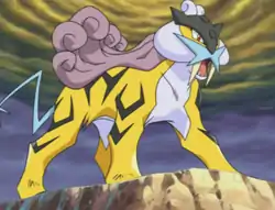 Raikou turns to leave, but Jimmy calls after it and offers help. Raikou hits Jimmy with an electric bolt, throwing him back. Jimmy gets back up again, narrowly missing another attack. The two stare each other down, until Jimmy makes a step forward. Raikou goes to shock him again, but is countered by a blast of flame from Typhlosion. Jimmy assures Raikou that they want to help it, promising that it can trust him. Raikou then collapses.