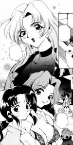 Like many female characters in the manga, the Sensational Sisters are all depicted with large busts (and in skimpy swimsuits), though this is edited out of VIZ Media's English translations.