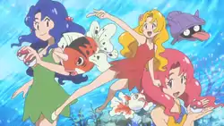 | A whole group of Goldeen belonging to the Sensational Sisters appeared in a water performance called "Underwater Ballet" swimming with the other Pokémon alongside Misty playing the mermaid, then pretending to go to sleep. When Team Rocket took over the show, they got the Goldeen trapped in a net. In the end, with the help of Ash and his friends including Seaking and Dewgong, they were able to get the Goldeen free. They were later seen in the finale of the performance.