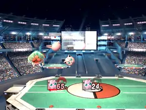 After beating The Subspace Emissary, the player can return to The Swamp and locate a door that did not appear before. Upon entering the door, a cinematic shows Jigglypuff singing at Pokémon Stadium 2. The player then fights Jigglypuff. If the player wins, Jigglypuff joins the party. Other than this, Jigglypuff does not play any significant role in the story.