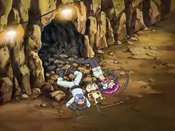The Underground appeared in The Grass Menagerie!. While Ash was battling Gardenia for the Forest Badge, Team Rocket stumbled across the sprawling tunnels of the Underground. They met the Underground Man, who convinced them to dig in the tunnels for Shards and Spheres. They agreed to split the profits with him in exchange for lunch. However, he fled with the treasure while they ate.