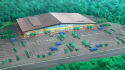 The abandoned Thrifty Megamart first appeared in A Photoshoot and the Abandoned Thrifty Megamart. Acerola took Sun and Lillie there so that the former could complete his second trial. Acerola gave Sun a Mismagius-shaped camera and told him that in order to complete the trial, he had to take a picture of the Totem Pokémon that lived inside the building.
