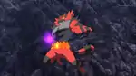 One or both of Incineroar's hands glow purple. It then grabs the opponent by the neck and throws them down to the ground at full force, or Incineroar chops the opponent with the side of one of its hands. Sometimes, the hand glows purple while using the move. | ||