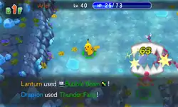 | Huntail's fangs glow yellow and creates a yellow aura shaped like a set of teeth, which then bites down on the opponent and they become surrounded in yellow sparks. | |||