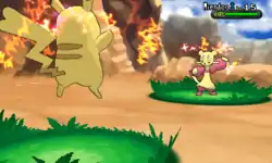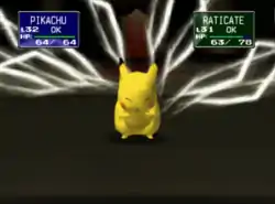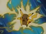 Pikachu releases multiple bolts of yellow electricity from its cheeks at the opponent. | ||