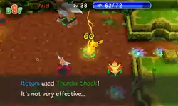 In Red Rescue Team, Blue Rescue Team, Explorers of Time and Darkness and Sky, ThunderShock is a move with 1 base power, 88% accuracy, and 17 PP. The user damages enemy in front, and might inflict paralysis on them. This move's base critical hit rate is lower than normal, at 2%.