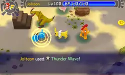In Red Rescue Team and Blue Rescue Team, Thunder Wave is a move with 17 PP and 50% accuracy. The user targets enemy in the front, inflict paralysis on them if possible. This move is affected by Magic Coat and Taunt.