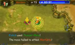 | A weak electric charge is launched at the foe. It causes paralysis if it hits. | |||