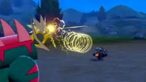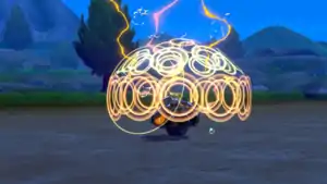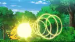 Heliolisk releases rings of yellow electricity from the tip of its tail at the opponent, paralyzing it. | ||