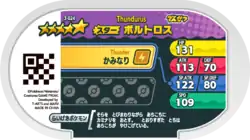 Thundurus (Japanese: ボルトロス Voltolos) is a Grade 5 Pokémon Mezastar tag. It is part of the third set.