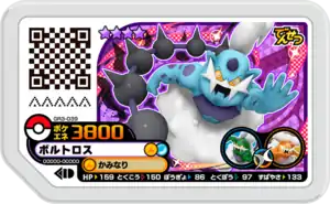 Thundurus (Japanese: ボルトロス Voltolos) is a Grade 4 Pokémon Ga-Olé disk. It is part of the third Grand Rush set.