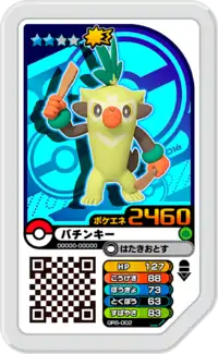 Thwackey (Japanese: バチンキー Bachinkey) is a Grade 2 Pokémon Ga-Olé disk. It is part of the fifth Grand Rush set.