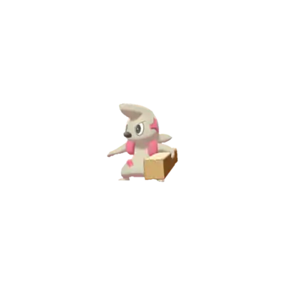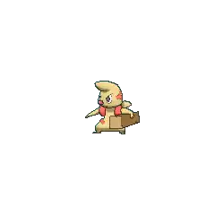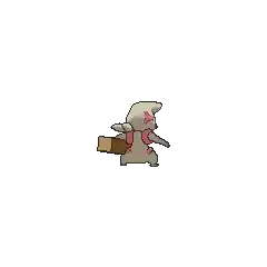 Timburr is a gray bipedal Pokémon with a dark purple nose and dark-gray oval-shaped eyes. It has bulbous protrusions extending from the front and lower parts of its head. Pink, vein-like bulges are present on the back of its head. Similar pink bands adorn its shoulders and thighs. It always carries squared logs and uses them to fight with. When it can easily lift a block of timber nearly three times its own weight, it is close to evolving. Timburr is usually found near construction sites, helping construction workers. It loves helping in construction so much that if rain causes work to cease, it will throw a tantrum while swinging its log.